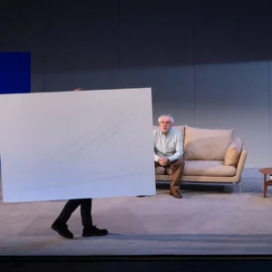 François Morel : C’est très clairement une pièce sur l’amitié. Ce sont des amis de quinze ans joués par des amis de trente ans ! L’art contemporain est un prétexte, le révélateur d’une relation qui, entre eux, a évolué. Serge, interprété par Olivier Broche, médecin dermatologue et amateur d’art, il vient d’acheter un tableau entièrement blanc. Marc, ingénieur dans l’aéronautique, que je joue, trouve qu’il s’agit d’une « merde blanche ». Il a quelque chose d’Alceste, intransigeant, peu enclin à épouser les nouveautés de son époque. Yvan, incarné par Olivier Saladin, est partagé. Il ne déteste pas. Aime-t-il vraiment ? Son parcours professionnel est plus approximatif. il est surtout préoccupé par d’autres soucis personnels, s’initie à la papeterie et à la vie matrimoniale. L’amitié peut-elle résister au temps qui passe ?